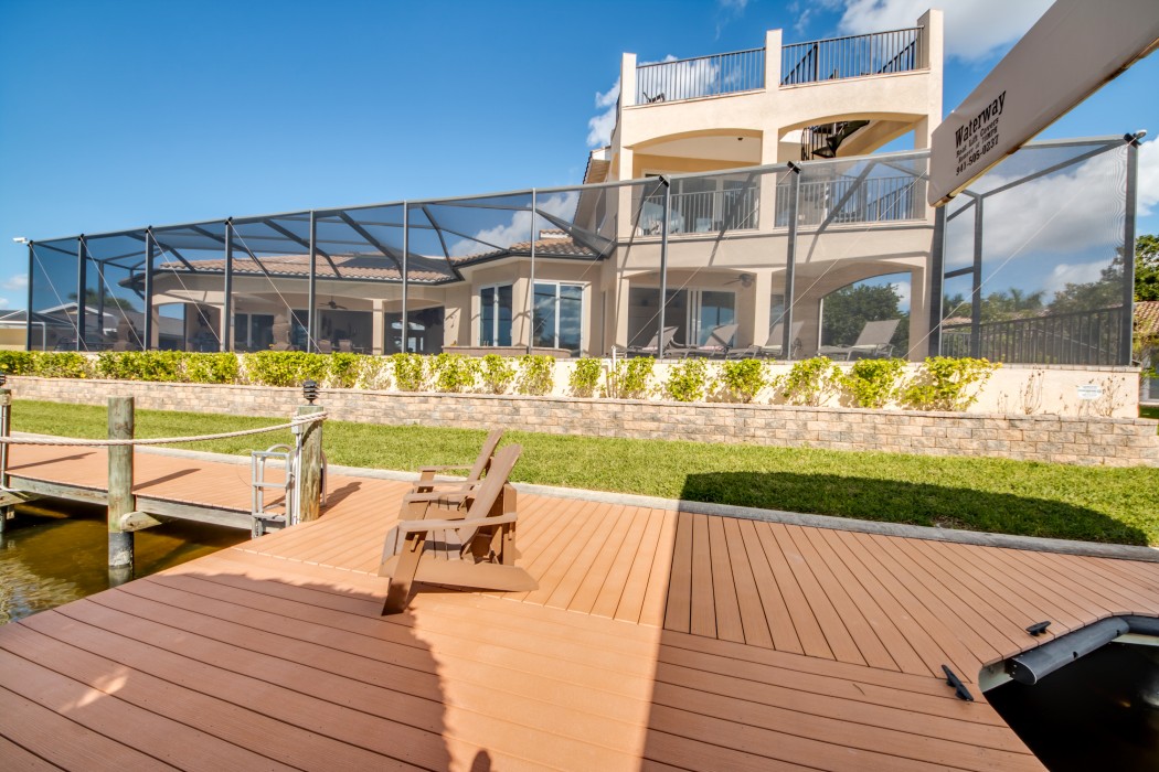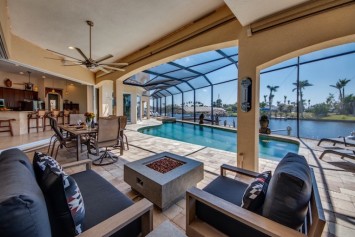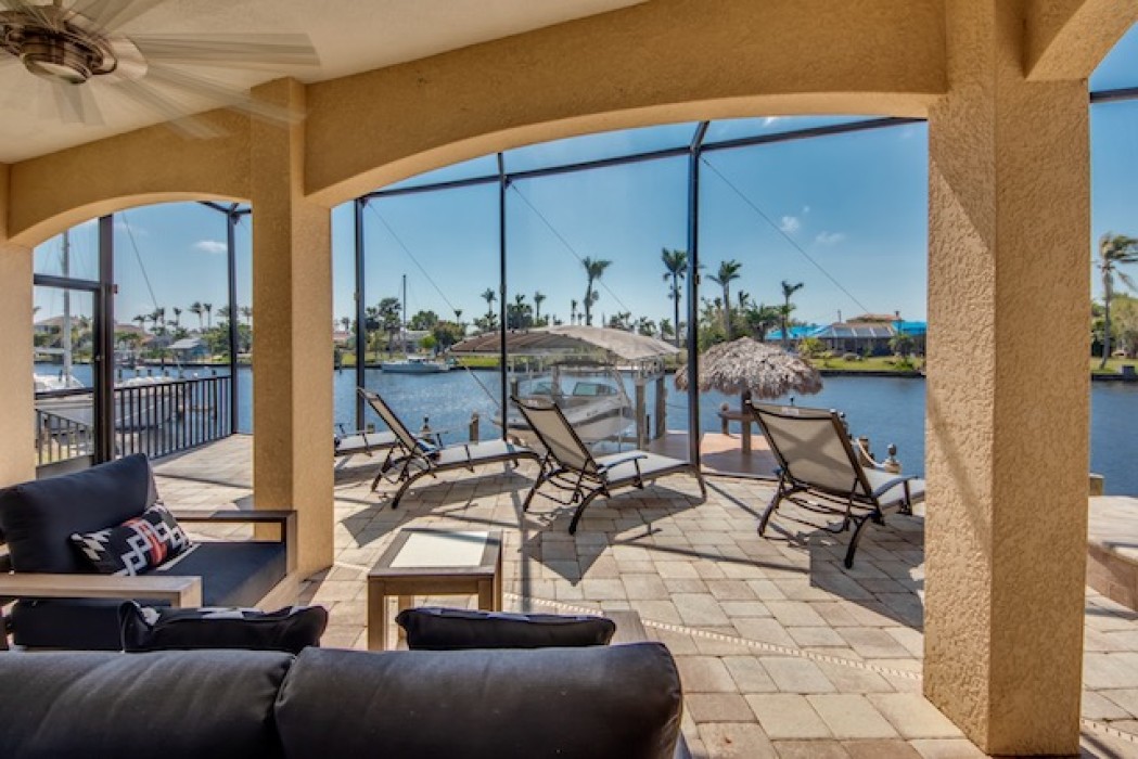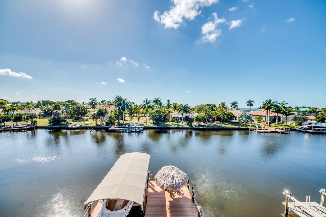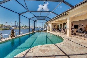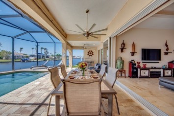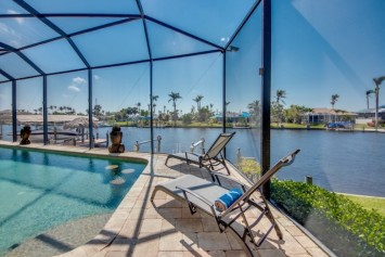 The view from the pool deck is amazingly beautiful as the villa is located on one of the widest canals in southeast Cape Coral.