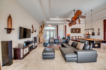 This is a two storey villa of 3842 sqft. High quality furnishings in Asian style, definitely leaves nothing to be desired. The large saltwater pool (no smell of chlorine & especially kind to the skin), faces south. It can be heated via a solar heater or a particularly economical heat pump.