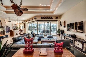 The 12-meter-long pool with 3 built-in bar stools has an outdoor hot tub. The villa has 3 separately climate zones. For entertainment, only Internet TV is offered. Throughout the house and also on the terraces, a Sonos system is installed. You can listen to the same music in the entire house or in the outdoor area, or you can also control each room individually. In the Sonos system you can integrate your own Smart Phone. If you do not have a smartphone, then you can use the iPad available in the house.