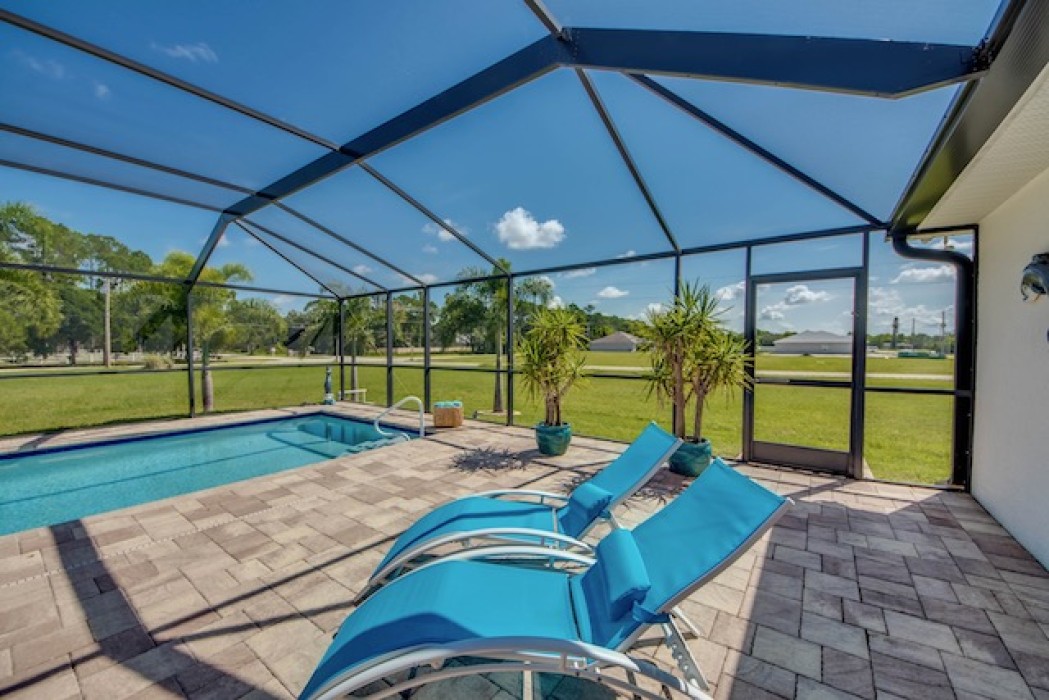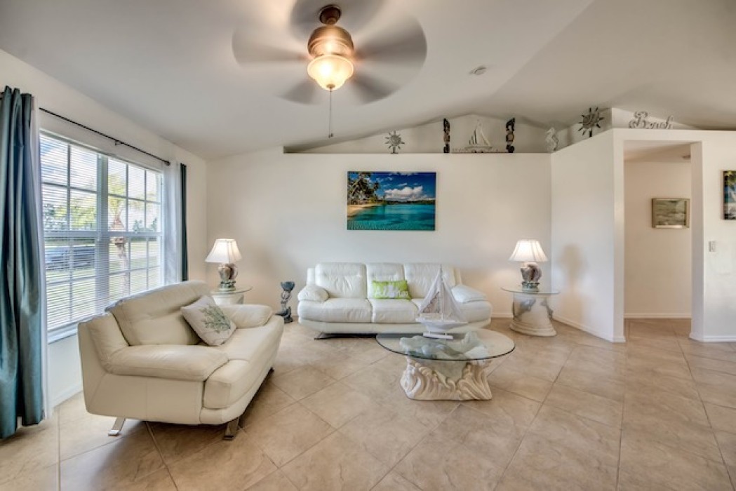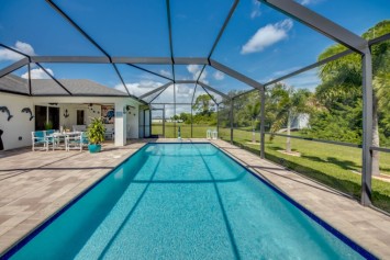This beautiful vacation villa is located in a quiet area in north-east Cape Coral. It offers enough space for 4 people on 1734 sqft and enchants with its charm. The entire villa is bright, very comfortable and furnished with great attention to detail. The view of the heated saltwater pool and the green surroundings, gives you that holiday feeling at all times.