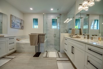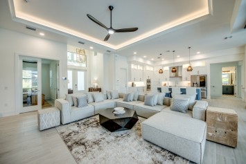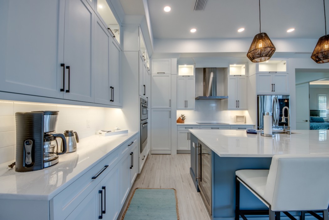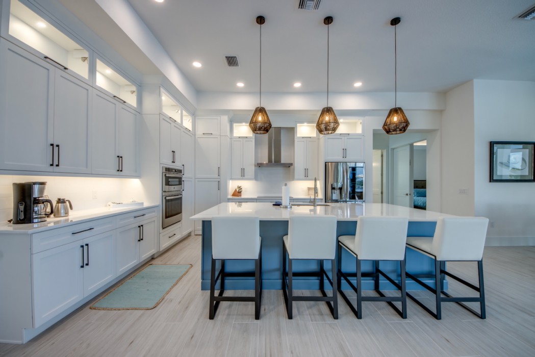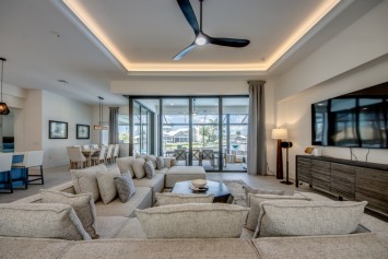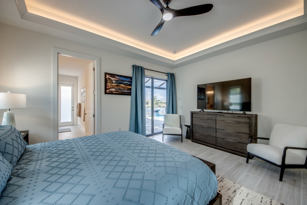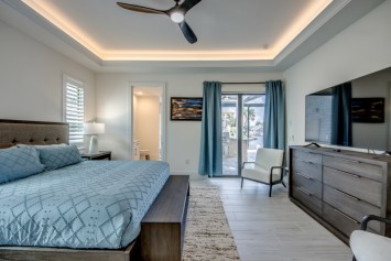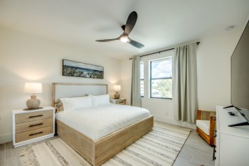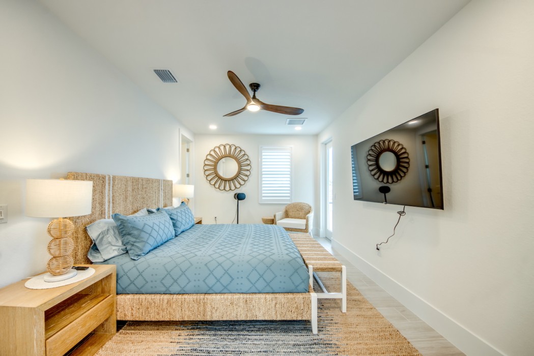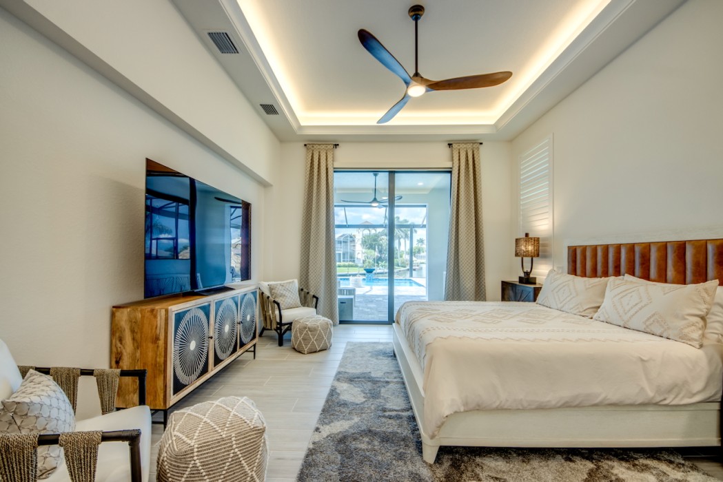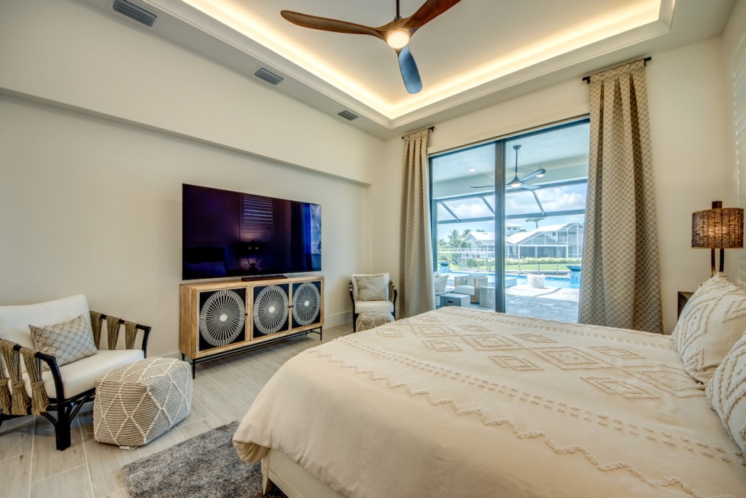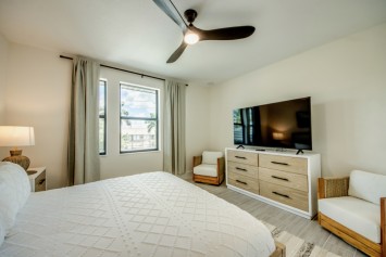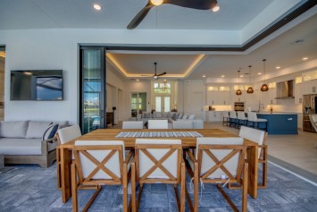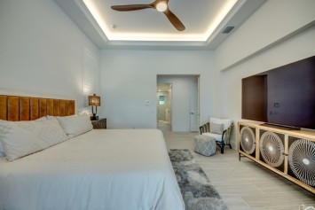 The villa features 4 spacious bedrooms and 4 bathrooms, providing ample space and comfort. The master suite and the 2nd bedroom are complete with blinds and a king-size bed, opens directly onto the pool area and are equipped with a flat-screen TV. The en-suite master bathroom includes a soaking tub, separate walk-in shower, and double vanities. The additional 2 bedrooms each also feature king-size beds, blinds and flat-screen TVs. All other 3 bathrooms are stylishly equipped with a walk-in shower. High-speed WiFi is available throughout the property. The expansive living area includes a sleek, fully equipped kitchen with bar seating and a spacious dining area - perfect for gathering and entertaining. Top-of-the-line appliances and kitchenware make cooking a pleasure, and coffee lovers will appreciate the Nespresso machine.