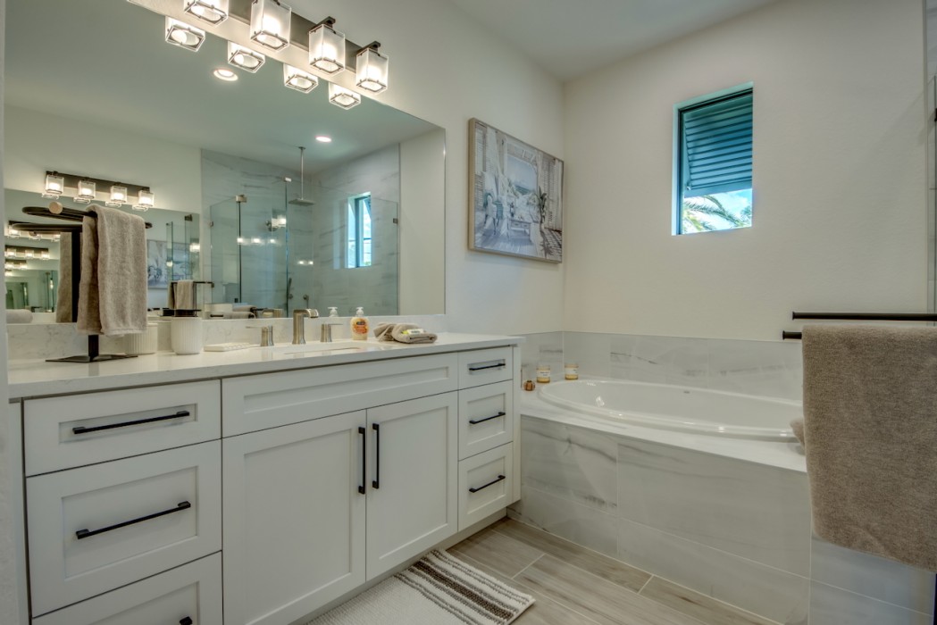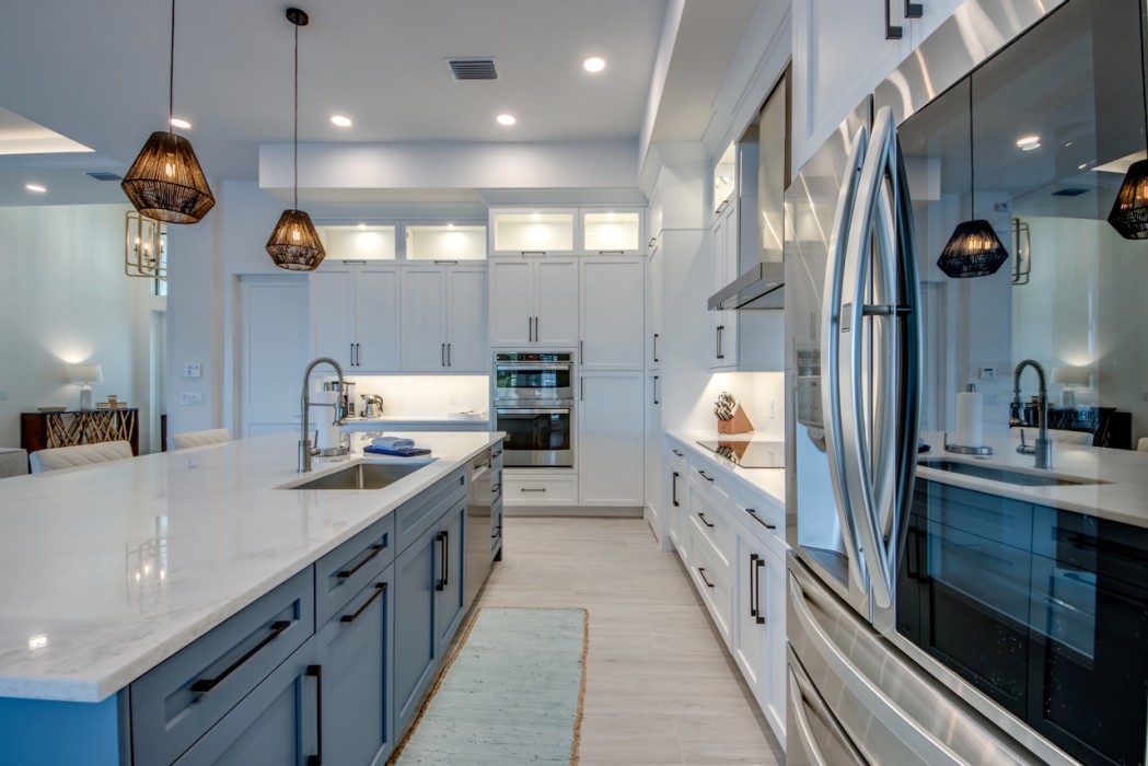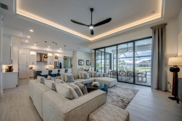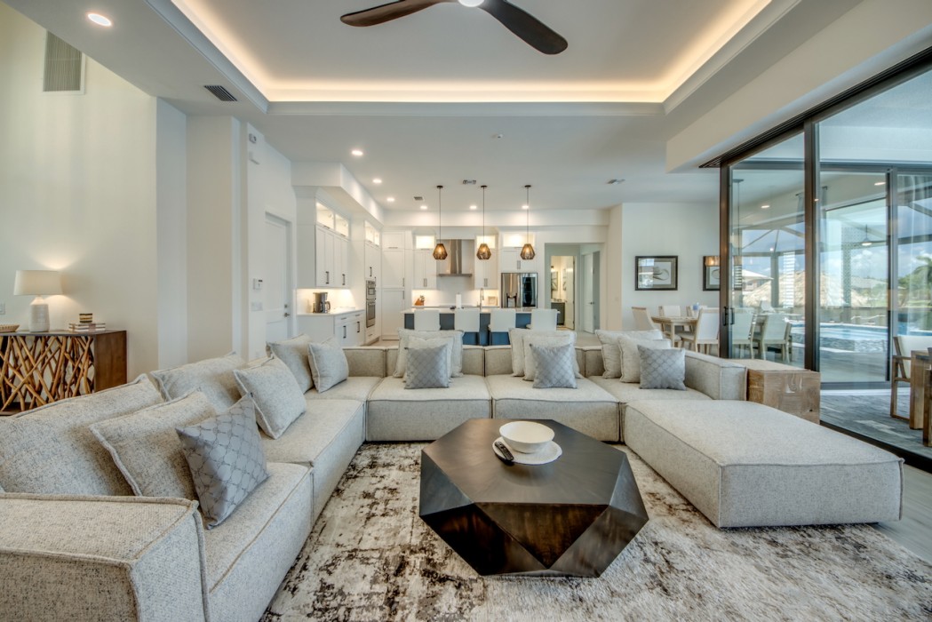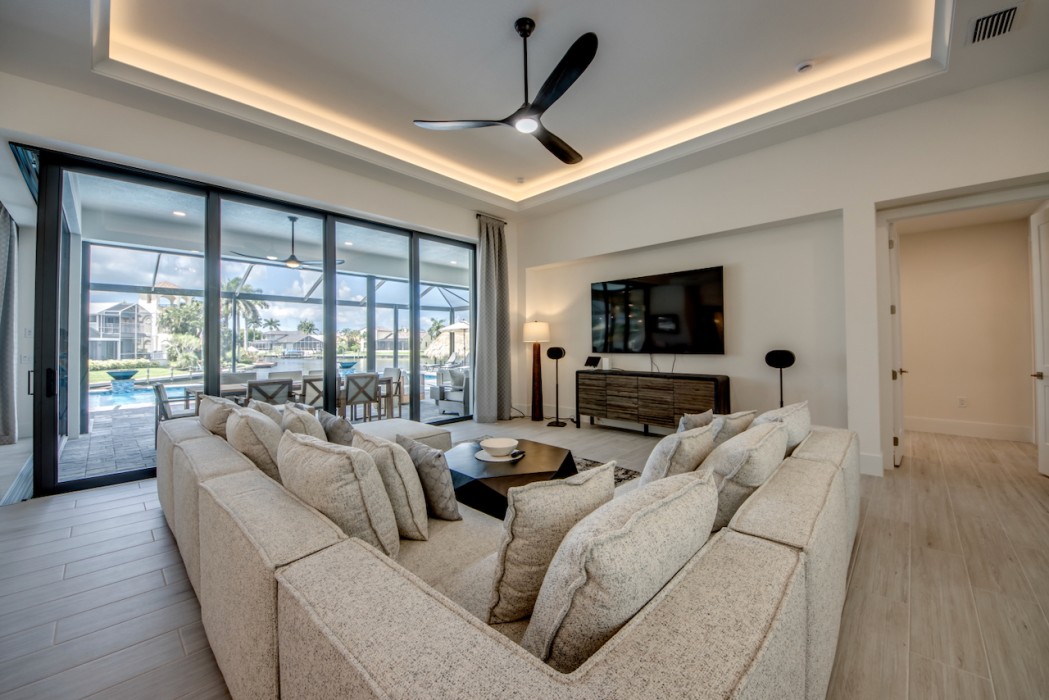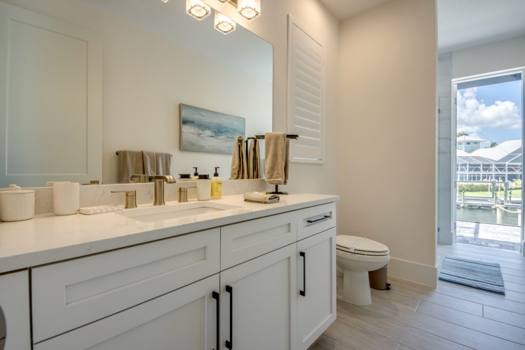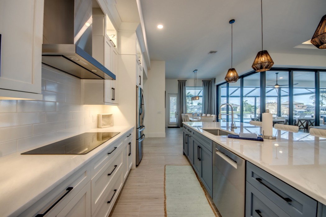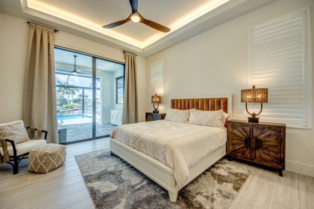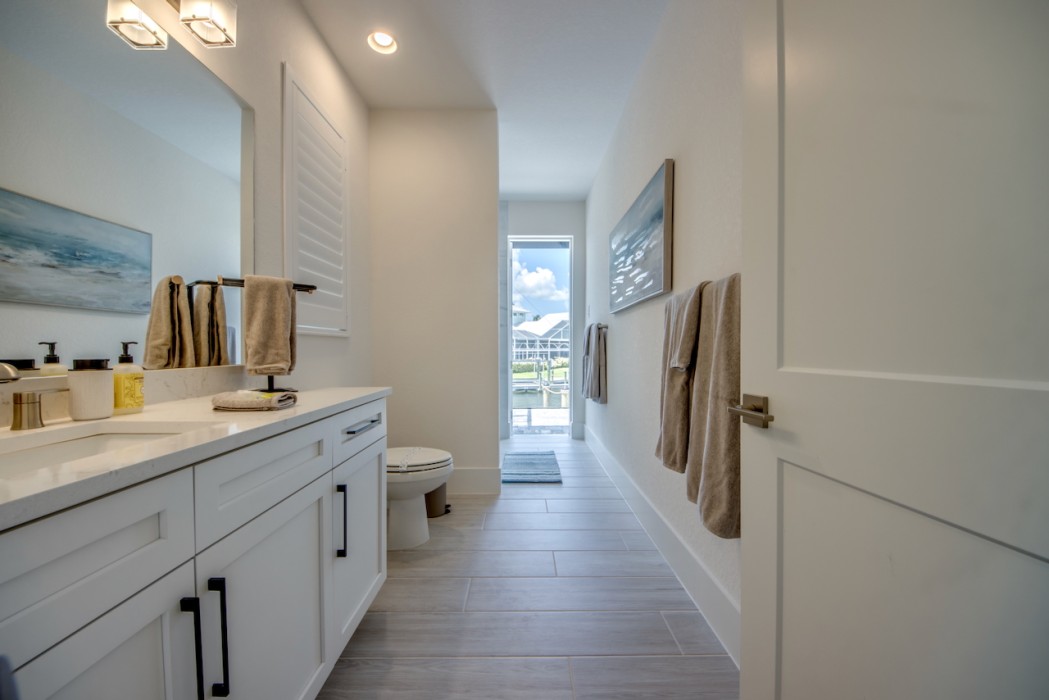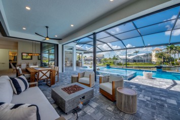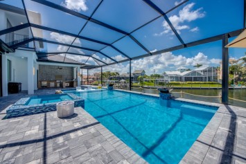 Step outside to the generously sized lanai, where a large heated pool and hot tub await - offering a private wellness retreat. The outdoor space also features a premium summer kitchen with an impressive granite countertop, perfect for preparing and enjoying barbecue meals in style. The entire lanai and pool area is enclosed with a screen, and sun loungers are provided for relaxing in the Florida sun. The highlight in the outdoor area are the 2 outdoor fire bowls right by the pool.