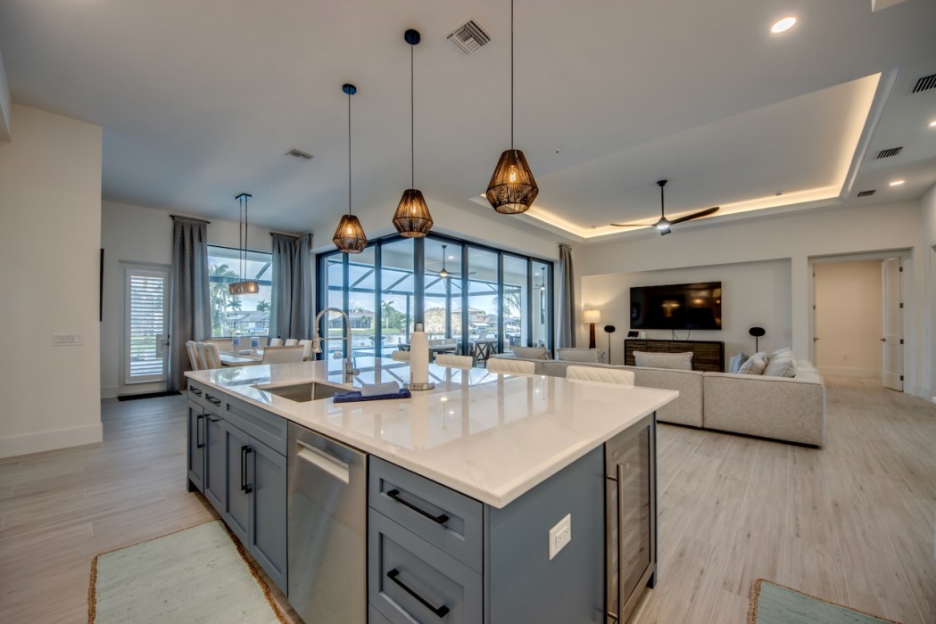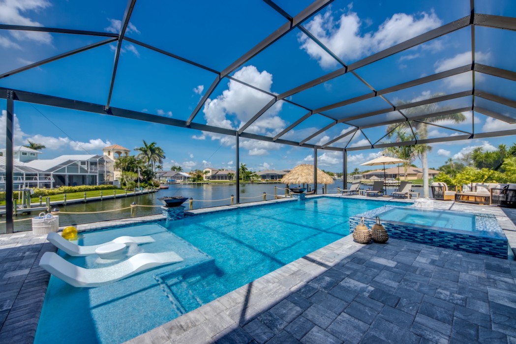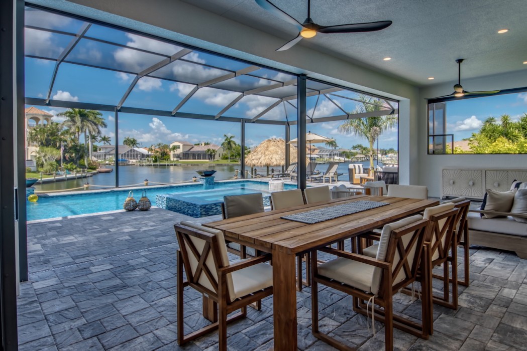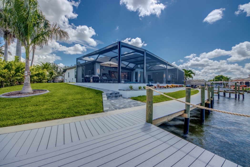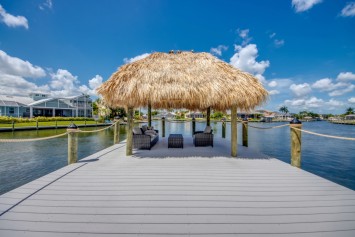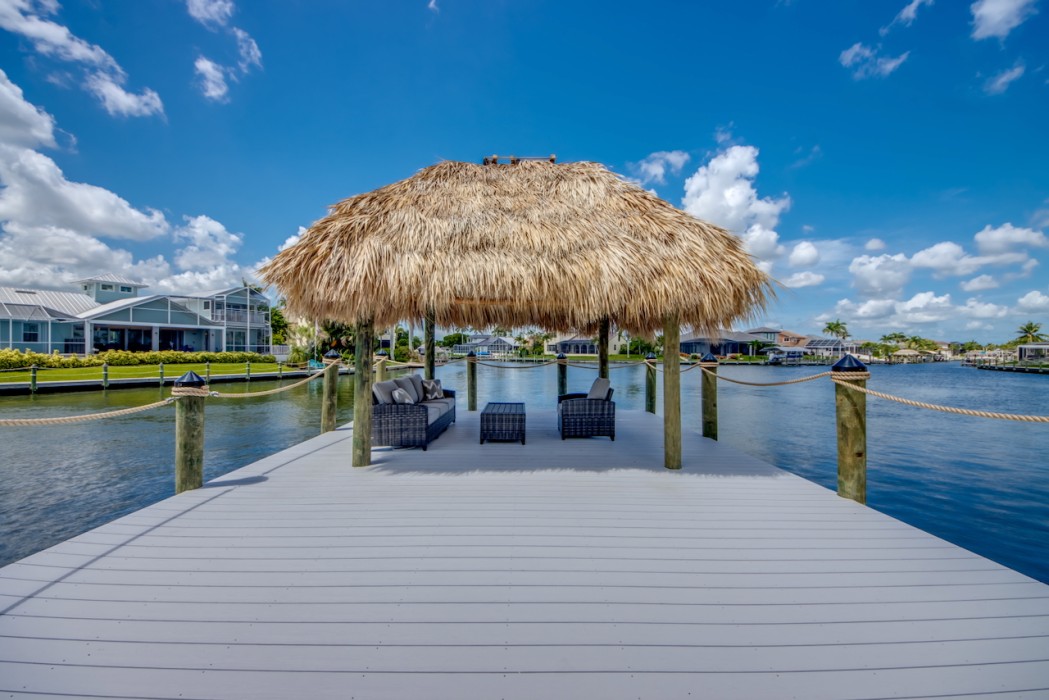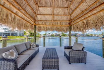 While relaxing on the terrace with your favorite cocktail, you might even spot manatees or dolphins passing by in the canal just outside your door. The huge boat dock has a captain's walk and a separate platform with a tiki hut.